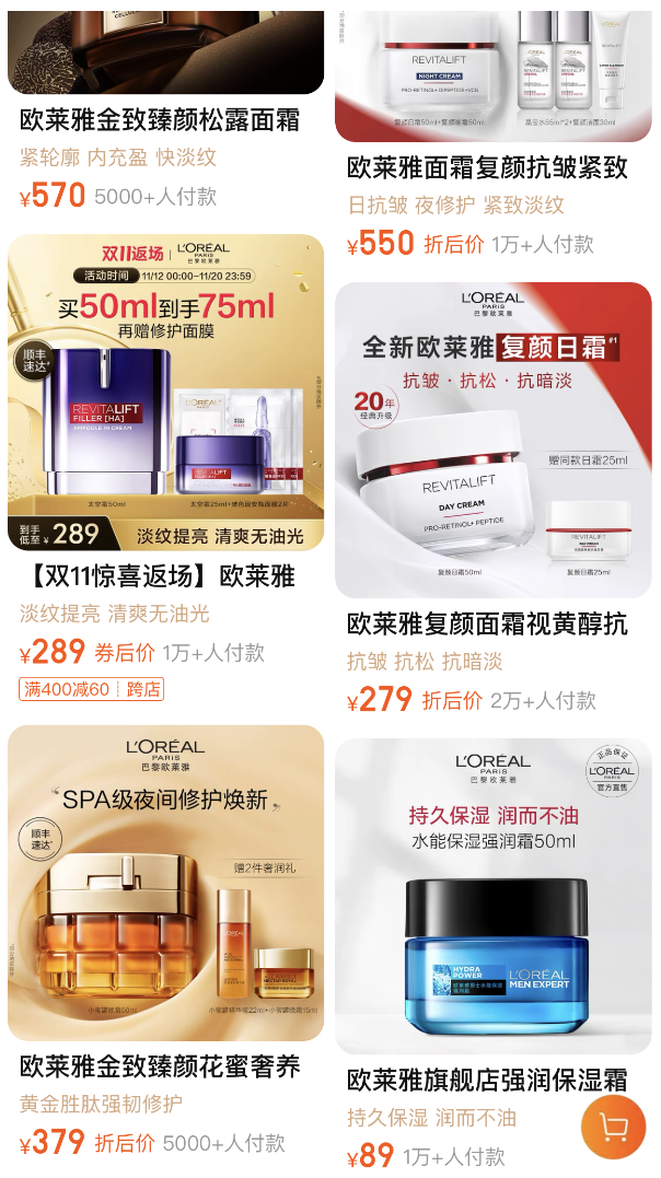 在双十一购物节时,多数消费者在欧莱雅集团旗下都能选到合适的产品,或者说选来选去还是没有离开欧莱雅集团,但很多品牌的产品仍有局限性,在不同的产品线或者是价格区间处于空白,无法给消费者提供更全面的选择,补齐产品线,通过更合理更丰富的产品结构提升竞争力。