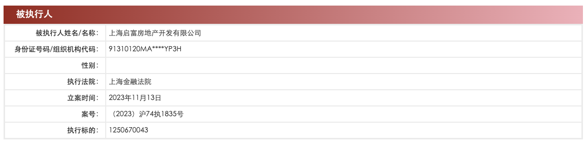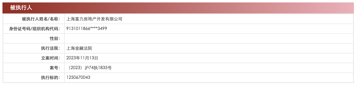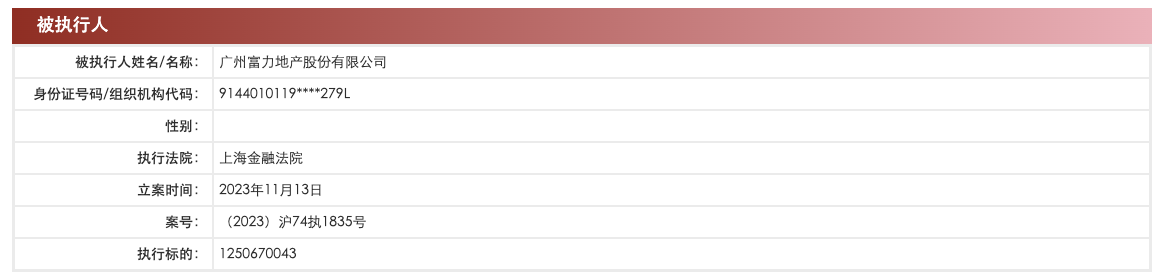 中国执行信息公开网显示,11月13日,广州富力地产股份有限公司及旗下上海富力房地产开发有限公司、上海启富房地产开发有限公司新增一则被执行人信息,执行标的12.5亿余元,涉及金融借款合同纠纷,执行法院为上海金融法院。