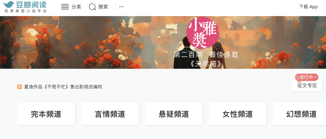 豆瓣阅读对平台一开始的定位是做偏出版风格的类型小说,在严肃文学和传统网文的夹缝间,戴钦和同事们找到了通俗小说的市场需求。
