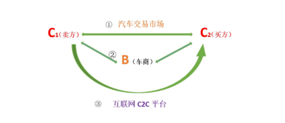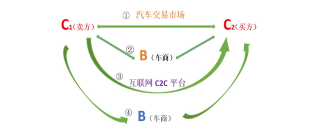 C1(私家车主)-B1(经销商/4S店)-B2(经销商/零售商)-C2(私家买家)