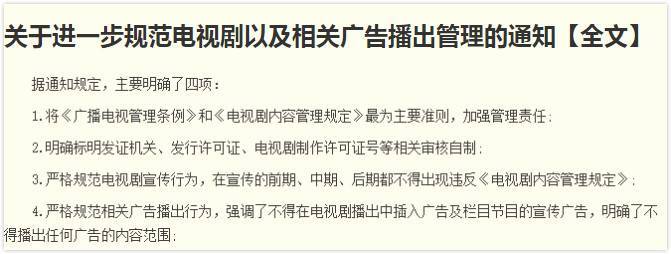 一位曾经在某一线卫视担任过广告方案策划的知情人士L先生告诉小娱,2016年4月,有关部门向卫视下达了“关于进一步规范电视剧以及相关广告播出管理的通知”,通知规定:禁止一切商业广告在电视剧情内露出。