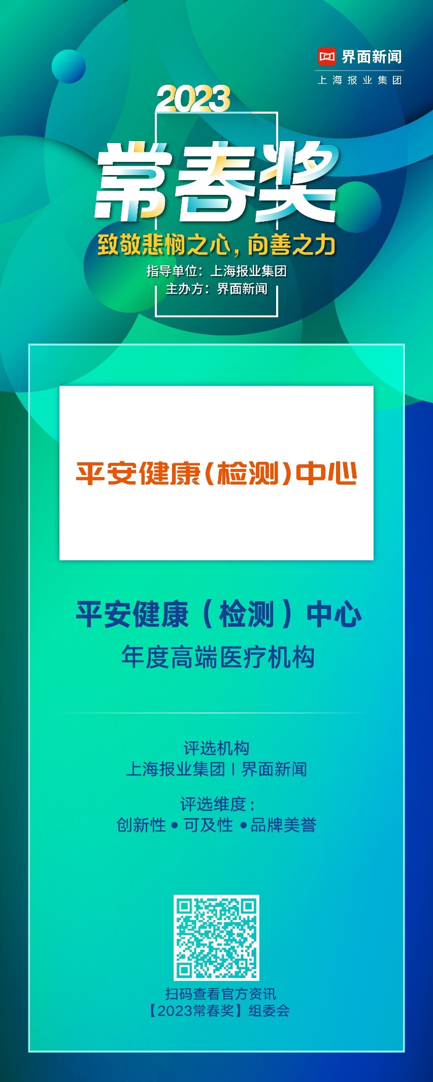 由上海报业集团丨界面新闻主办的2023【常春奖】通过榜单致敬那些心怀悲悯之心,秉持向善之力,为改变人类身心痛苦而埋头进取的公司与个人。
