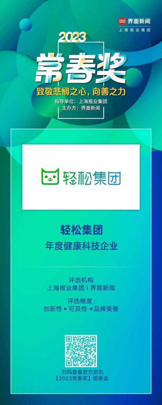 11月16日,在2023【大健康常春论坛】现场,上海报业集团l界面新闻揭晓2023【常春奖】终榜,正式公布了本年度获奖名单。聚焦大健康行业的升级和变化,综合社会各界的意见与建议,来自制药、医疗器械、互联网医疗、医疗机构、消费保健、健康金融等领域的30家企业夺得了年度大奖。轻松集团凭借优秀的全面健康保障体系荣膺年度健康科技企业。