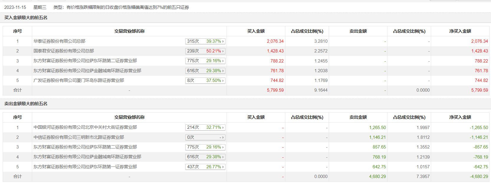 云煤能源11月15日涨停,全天换手率达12.65%,振幅达14.14%。龙虎榜数据显示,营业部席位合计净买入1119.3万元。其中,华泰证券总部、国泰君安证券总部分别买入2076.34万元、1428.43万元;中国银河证券北京中关村大街证券营业部、中信证券三明新市北路证券营业部分别卖出1265.50万元、1146.21万元。