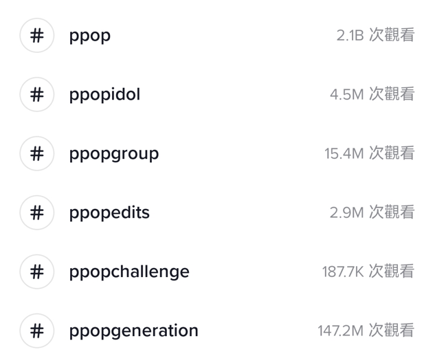 这也令P-Pop音乐作品被本土网友大量用作BGM、Challenge挑战的素材,本土艺人的踊跃参与,也增强了作品破圈能力;而在“PPOP”这一话题在TikTok上迄今已有超过20亿播放,BINI、SB19等P-Pop艺人掀起的舞蹈Challenge热潮也在K-Pop、中国内地等市场引起不小的挑战热潮。