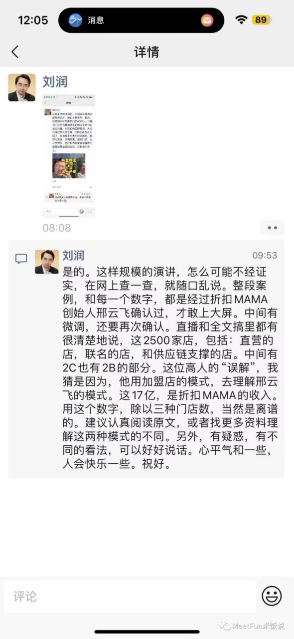 越来越多本来看热闹的网友开始认真看数据,发现折扣MAMA在门店数量、净利润、员工数等数据上确实存在明显漏洞。于是,网友们纷纷开始声援马欣彤,并声讨刘润和邢云飞回应。