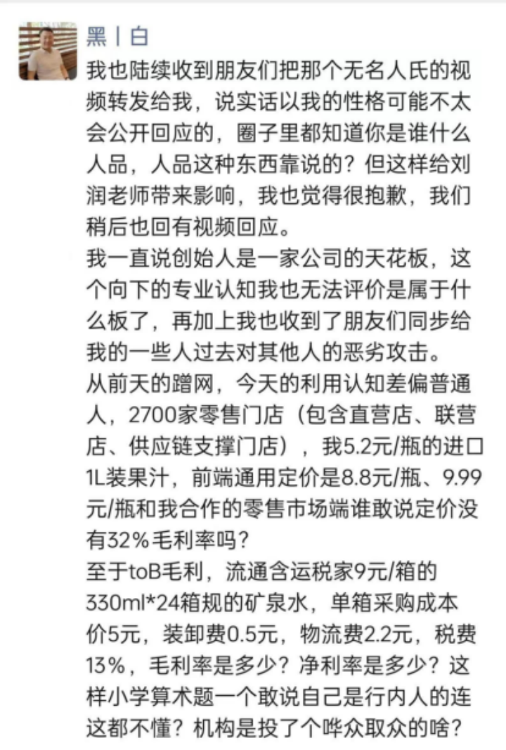 11月1日:刘润公开发文,把和折扣妈妈刑云飞的对话截图、会议视频拿出来举证,自己的所有案例都是验证过的,没有问题。
