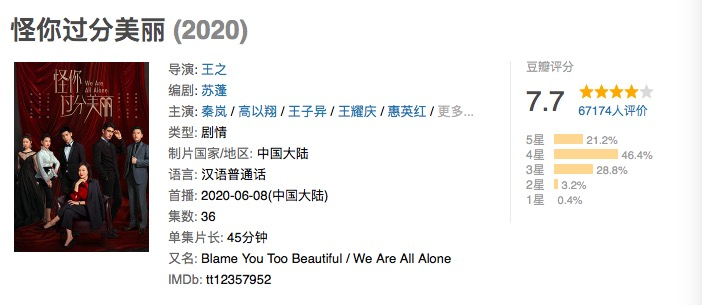 相比这两年来古装剧频繁开出豆瓣8分的好剧,曾经普遍集中在豆瓣7分阵营的现偶却开始走向两极分化。一面是豆瓣8分剧保持产出,另一面是头部剧多次被吐槽出圈,比如豆瓣2.8分的《我的人间烟火》,再比如豆瓣4.8分的《以爱为营》。而后者显然更具市场声量。