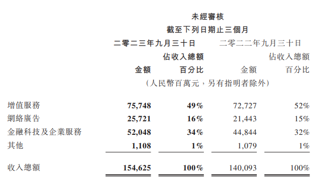 在收入同比增长10%的情况下,三季度的收入成本维持了稳定,使得毛利率从46%提升至了51%。并且是增值服务、网络广告、金融科技及企业服务三大业务的毛利率全部提升。