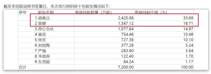 截至招股说明书签署日,胡衡沅合计控制昆仑联通48.66%股权,已经是公司控股股东、实际控制人。而作为公司的前两大股东,胡衡沅、晋健也将公司的利益牢牢掌握在自己手中。