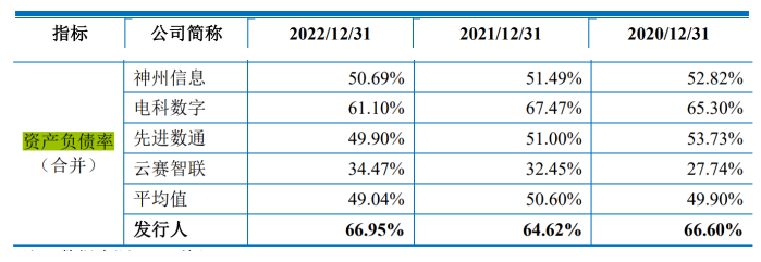 而资产负债率更是远远高于行业平均水平。2020年-2022年,公司资产负债率分别为66.60%、64.62%、66.95%,同行可比公司平均值分别为49.90%、50.60%、49.04%。
