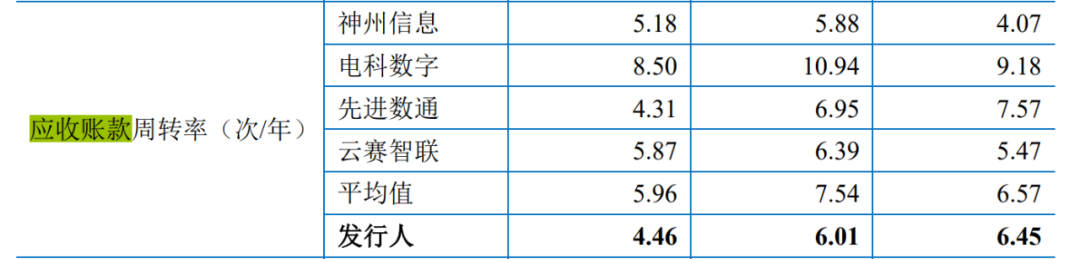 同期,公司应收账款周转率分别为6.45次/年、6.01次/年、4.46次/年,同行可比企业平均值分别为6.57次/年、7.54次/年、5.96次/年,昆仑联通逐渐拉大了与同行的差距。