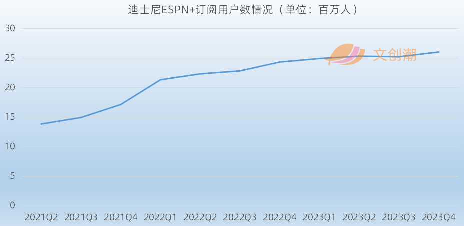 该季度,ESPN+的付费订阅用户达到2600万,同比增长3%,但月度ARPPU则下降2%至5.34美元。