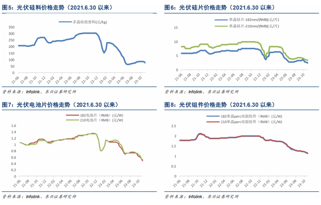 但进入2023年,此前新建的产能逐渐投产,供需关系改善,硅料价格也逐渐走低。