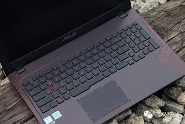 ZX53V键盘设计也是其产品型号一大特色,毕竟游戏本键盘没有背光怎么行呢。ZX53V键盘搭载了红色键盘背光,主流的巧克力键盘设计,背光亮度可三级调节,通过FN+F4可以实现,FN+F3就是降低背光键盘亮度。另外键盘上WASD 标准方向按键也采用了红色标识注明,游戏本的专属设定。