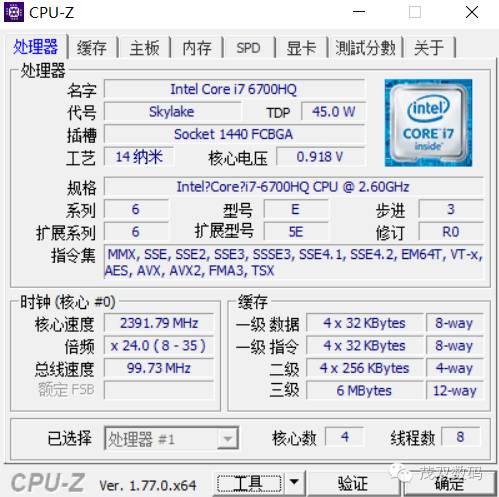 ZX53V: 核心硬件,性能能走多远?(高配版数据) ZX53V高配版搭载Intel Core i7-6700HQ 六代处理器,Skylake核心架构,14NM制作工艺,主频2.6GHz 睿频3.5GHz 四核心八线程,L3缓存为6MB,功耗:45W
