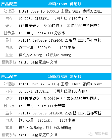 ZX53V体验总结 通过这段时间的使用操作体验做个小总结。如果日常需求只是一般网游普通类型大型3D单机游戏的话,建议低配版,搭载I5-6300HQ处理器+GTX960M 2G完全是可以满足的了。如果是发烧级玩家,游戏编程开发设计等用途的话,建议选择高配版 I7-6700HQ+GTX960M 2G独显即可。