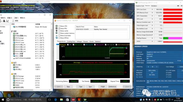 使用AID 64和FurMark对处理器以及显卡进行双拷测试: