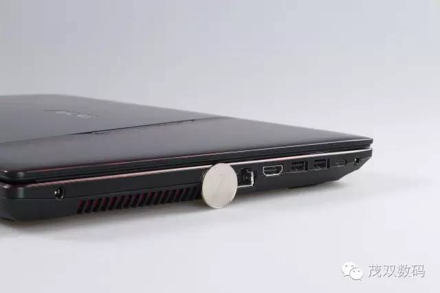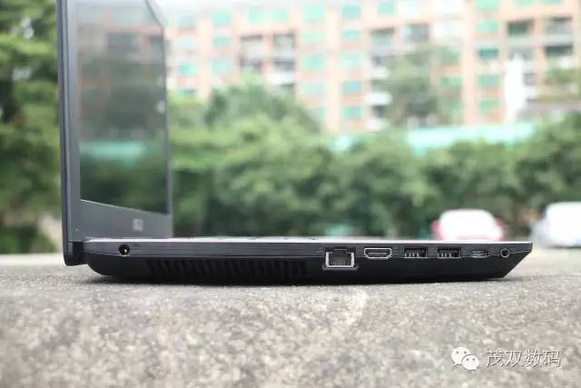 机器左右两侧分别是传统的布局设计,左侧分别是电源接口、红色散热孔、网线端口、HDMI高清接口、USB3.0*1、Type-C接口以及音频接口。右侧则是防盗锁口、DVD刻录光驱、USB2.0接口。