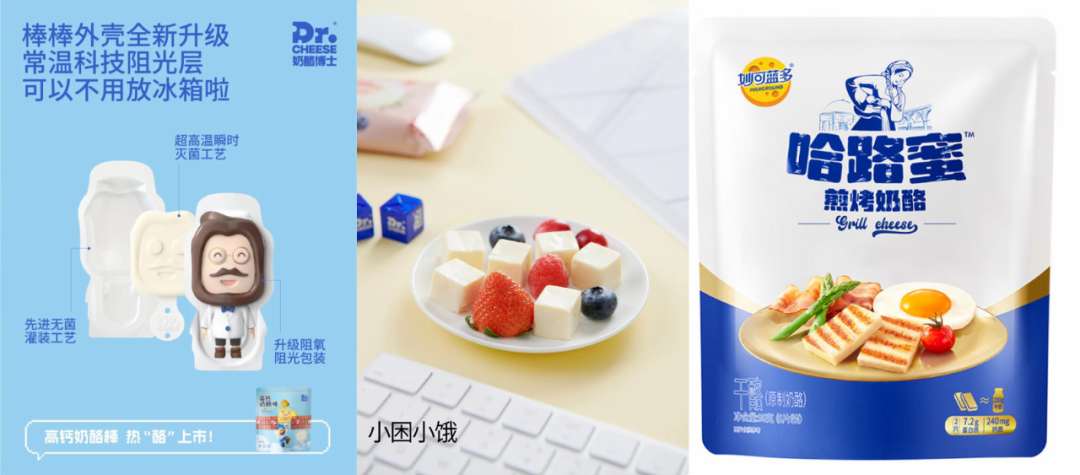 今年,奶酪市场诞生了许多新产品,例如奶酪博士、光明纷纷推出常温奶酪棒,奶酪博士推出的小方奶酪,妙可蓝多新推出的煎烤奶酪……不难看出,不管是巨头还是新锐,都在不断占位新的奶酪细分品类,将触角伸向更多场景和人群。