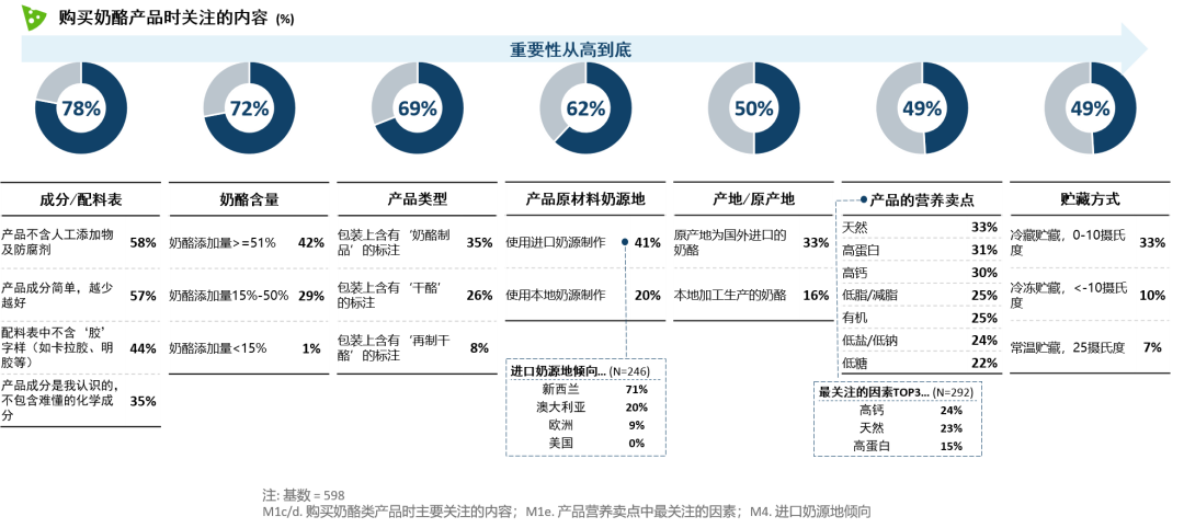 另一方面,恒天然也调研了消费者在购买奶酪产品时的关注点。其中,成分/配料表(不含人工添加物及防腐剂)、奶酪含量(含量≥51%)、产品类型标注、 奶源地是消费者购买奶酪时最主要关注的内容。