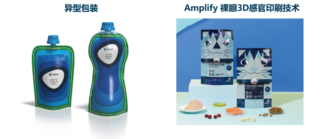 最后,有一项今年的重要产品创新,即裸眼3D感官印刷技术。这项技术具有独家专利,可以创建出具有动态效果的包装,不仅适用于软包装,还可以用于纸包装、瓶子等。这项技术为包装增添了吸引力,适合用于线下销售环境,既可以吸引消费者的眼球,还能引导他们更深入了解产品。