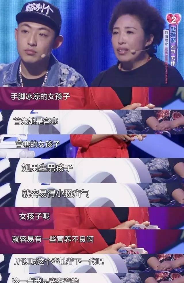 另外一个营养师母亲,上来就要求女生不能手凉,因为手凉的女孩宫寒,宫寒生出来的孩子健康没有保障。简单粗暴,这家人出来相亲其实要找的就是一个生育机器。