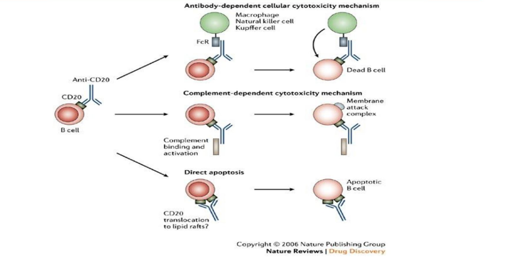 CD20是一种在B细胞表面表达的跨膜磷蛋白,尤其在淋巴瘤、白血病等肿瘤细胞表面高表达。在特异性抗体与CD20结合后,利用人体免疫系统完成对癌细胞的杀伤。虽然CD20也会出现在正常的B细胞表面,但由于生成B细胞的祖B细胞依然可以持续生成B细胞,而支撑免疫系统运行的浆细胞也不受影响,因此CD20靶点就成为极佳的抗癌靶点。