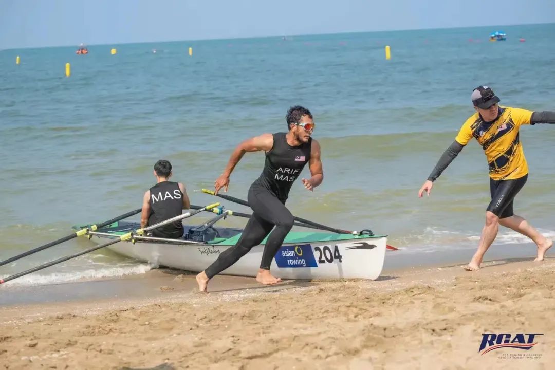 沙滩冲刺是海岸赛艇比赛中非常流行的一种赛事模式,在许多海岸赛艇比赛中都被采用。比赛由沙滩开始,运动员需要快速跑向停靠在沙滩边的赛艇,跳入艇中,划艇绕过特定浮标后,返回沙滩,再从艇中跳出,最后冲过沙滩上的终点线。此次赛事由排位赛、复赛、1/8决赛、1/4决赛、半决赛、决赛等部分组成,以两两PK形式展开激烈争夺,集竞技性、对抗性、趣味性、观赏性于一体。