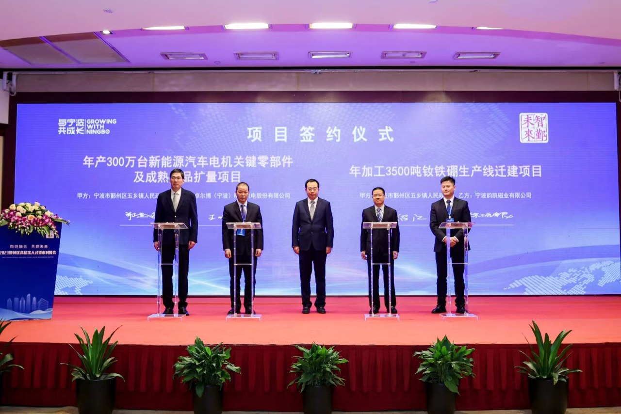 在现场签约仪式中,年产4GWh储能系统集成与6万台储能逆变器项目、年加工3500吨钕铁硼生产线迁建项目、智能工厂及时尚产业园项目、年产300万台新能源汽车电机关键零部件及成熟产品扩量项目、中关村智科服务外包产业联盟项目、上海发明人俱乐部发明人聚会项目,共6个优质项目集中签约,其中有4个项目落户五乡。
