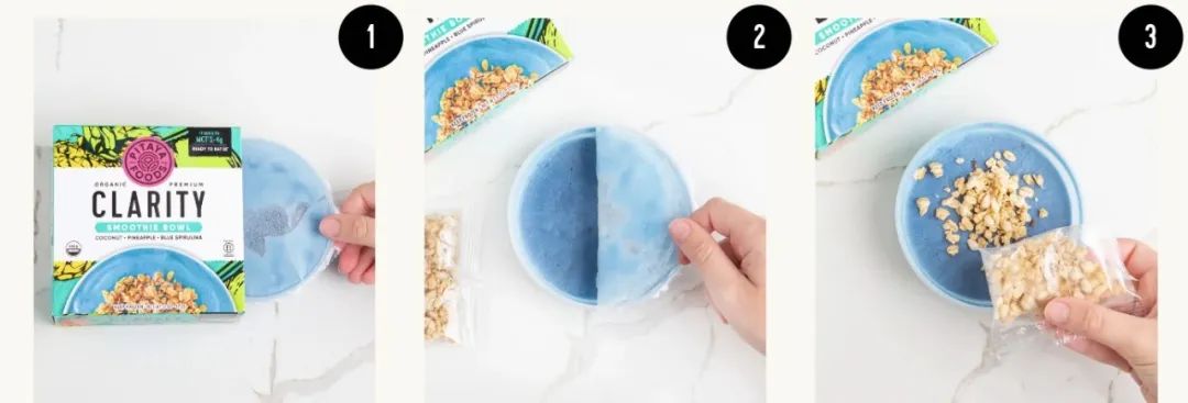 例如,这款Clarity奶昔碗含有椰子、菠萝和蓝色螺旋藻成分,充满热带风味。消费者还可以在奶昔碗中放入无麸质格兰诺拉麦片享用。品牌表示该产品可以作为“大脑燃料”让保持精力充沛、注意力集中,是早餐、午餐或旅途中零食的快速美味解决方案。