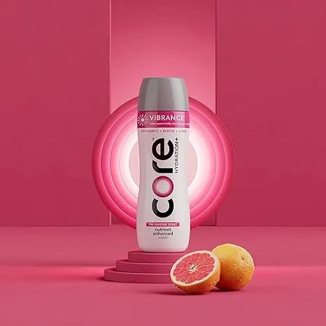 Core Hydration+就是一系列提升维生素含量的水。在该系列中,VIBRANCE产品添加有维生素 C、生物素和锌,有助于支持皮肤、头发和指甲健康。此外还含有粉红葡萄柚提取物,带来风味。