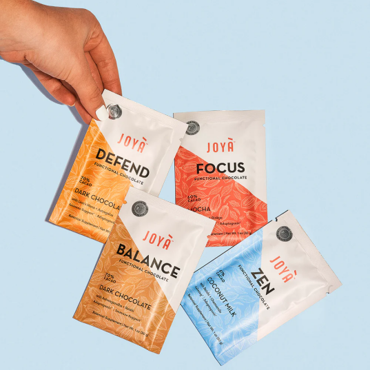 加拿大Joya公司在今年月推出一系列功能性巧克力。品牌表示其产品低糖,还有含有灵芝、南非醉茄、银杏、猴头菇等功能性成分,主打减缓压力,提升健康。