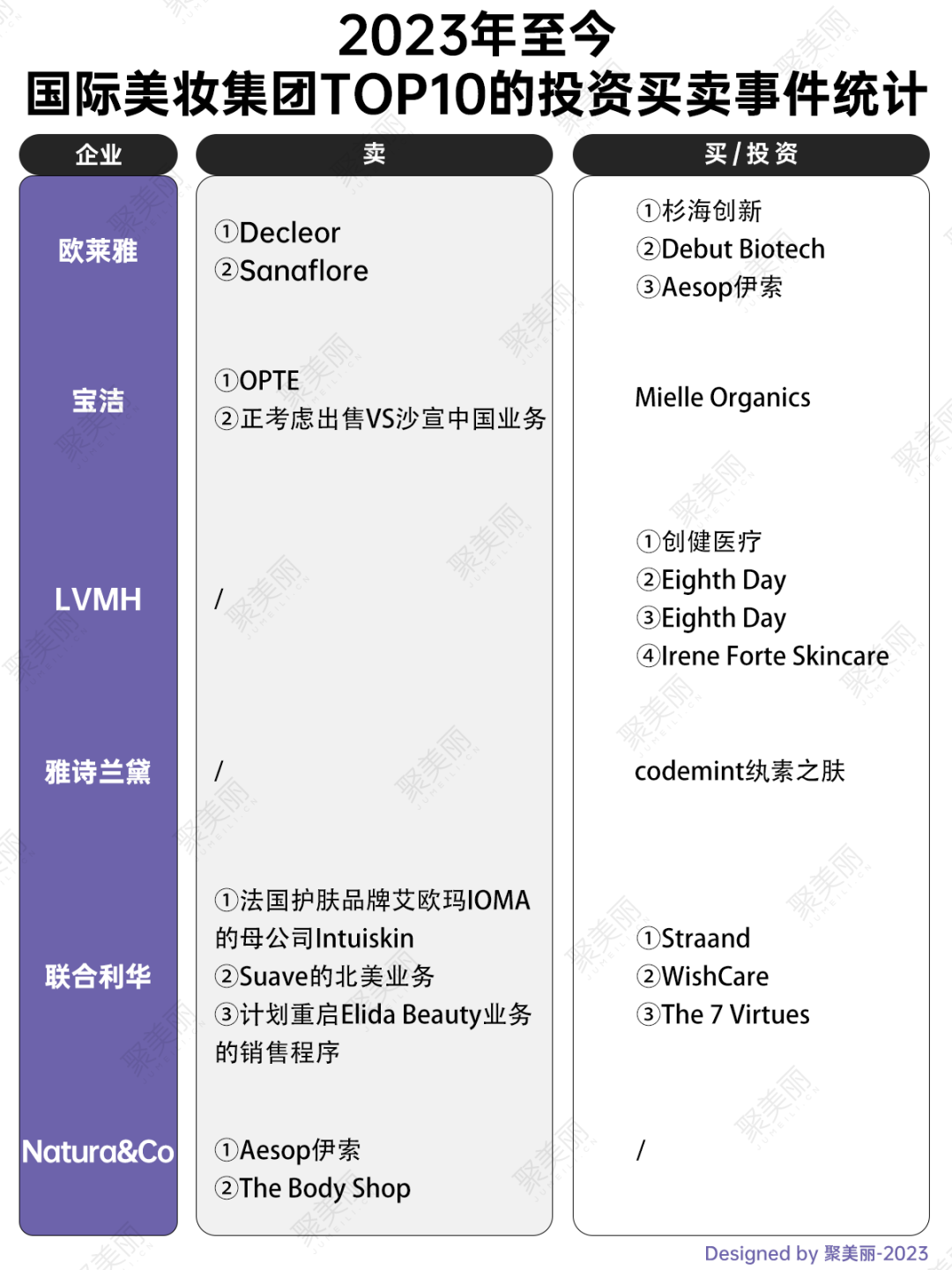 作为全球TOP的美妆集团,在其商业逻辑中,多品牌是写在其成功路径中的清晰战略。今年以来各个美妆集团也是摩拳擦掌,买卖不断。据聚美丽不完全统计,今年以来国际美妆集团TOP10中已发生21起资本买卖事件。