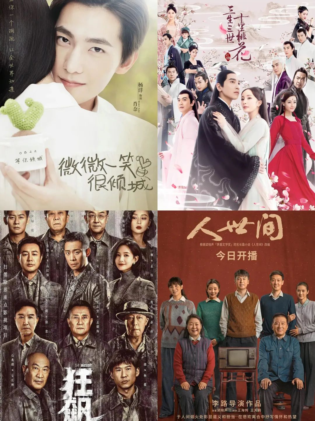 (《微微一笑很倾城》《三生三世十里桃花》《狂飙》《人世间》(图源:豆瓣)