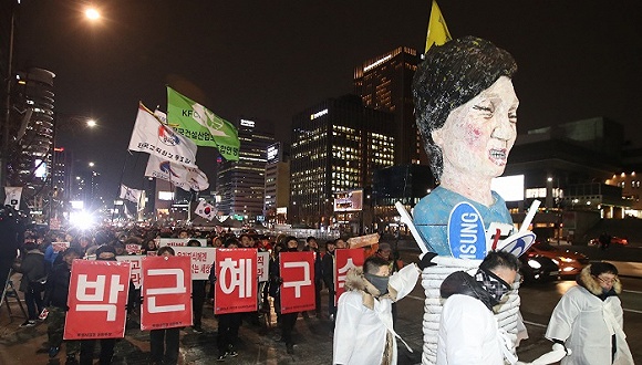12月9日,300名韩国国会议员中有234人投下了赞成票,通过了三大反对党和独立人士提起的弹劾案,认定朴槿惠在任职期间允许“闺蜜”崔顺实等亲信干政、对“世越”号事故应对不力违反了宪法,同时在三星、乐天等大企业捐款问题上存在受贿嫌疑。