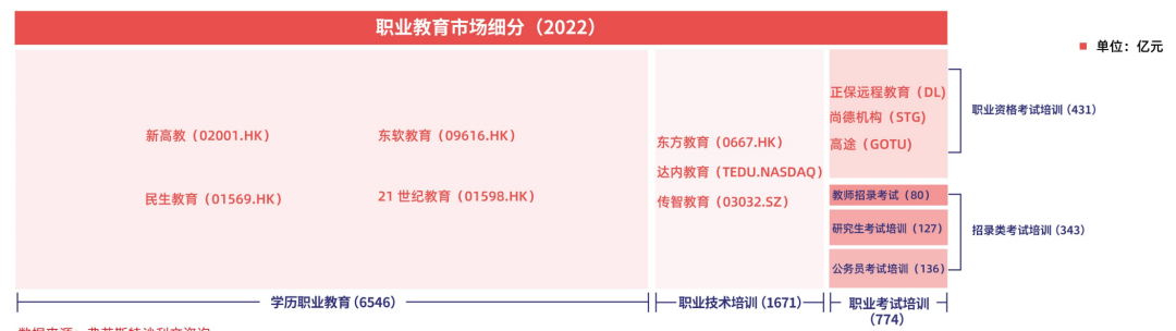 新职业教育品类具有延长性,商业模型和业务逻辑市场需求迭代,进入壁垒相对较低,市场格局分散,市场增速大于企业的发展速度,属于蓝海市场,前景开阔。
