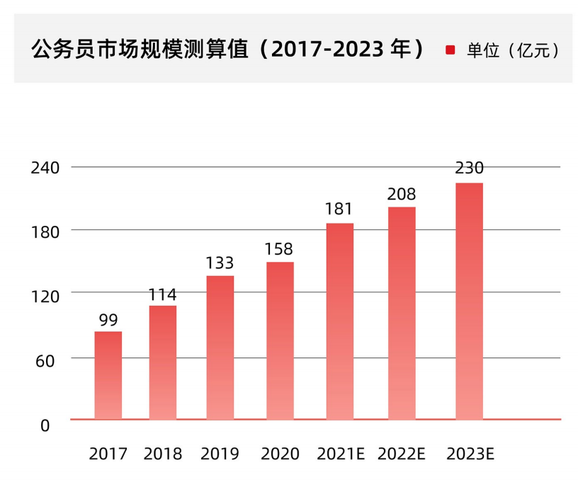 再看考研行业,天花板较低,市场规模同样破百亿元,市场格局分散,缺乏明显的集中度。报考基数大叠加高参培率,考研培训市场成长空间可期。