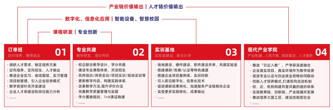从「产教结合」到「产教融合」,从订单班、到专业共建、实训基地、再到现代产业学院,产教融合经历了由浅到深的转变,成为职业教育高质量发展的核心动力。随着产业结构转型升级的进展越来越快,许多新兴科技、数字化和信息化产业对人才培养提出了更高的要求。在这一过程中,数字化、信息化应用、智能设备和智慧校园等内容更深刻地影响了产教融合的过程,使产学研合作进入了更前沿的阶段。