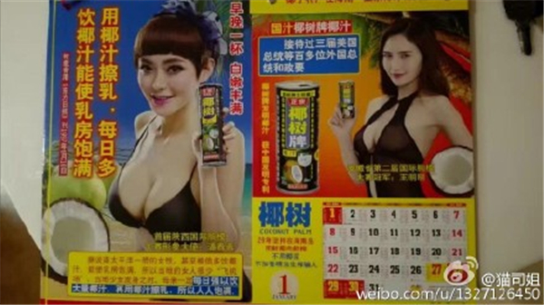 椰树牌椰汁有一个“白嫩丰满、曲线动人”的广告,一开始还只是让广告代言人拿着椰汁摆pose;