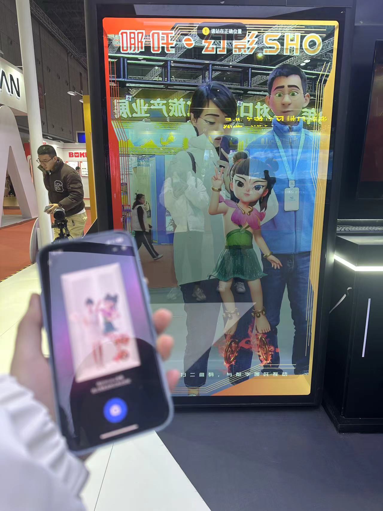 展厅现场,不少观众在选择与哪吒的实时对话之余,还通过扫码与哪吒同框合影互动。