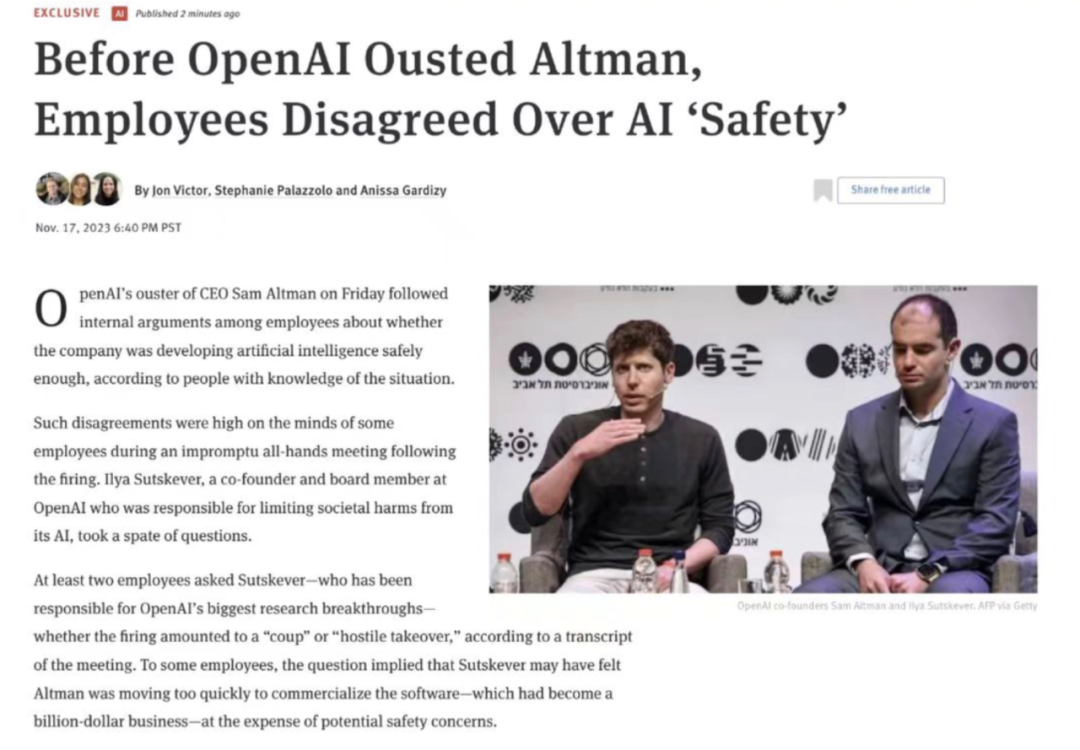 的确,ChatGPT面世不久,便有多起AI泄露、AI投毒、AI诈骗等事件的发生,作为管控者,Altman固然应该尽可能的确保ChatGPT的安全性,但他构建技术安全的方式,似乎确实十分激进。