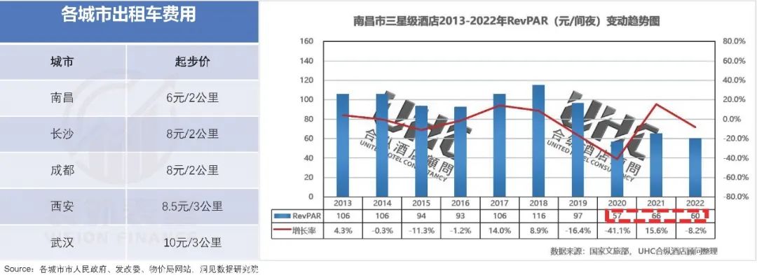 与之相反,风格清奇的南昌则成为了一股清流。其物价感人不仅在于拌粉,就连打车的起步价也是几个城市中最低的,甚至去年三星级酒店的单客房实际营业收入低至60块一晚。
