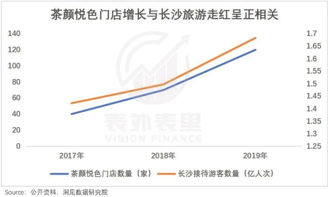 可以看到,茶颜悦色门店数量狂飙与长沙旅游人数爆发,呈现一定的正相关性。