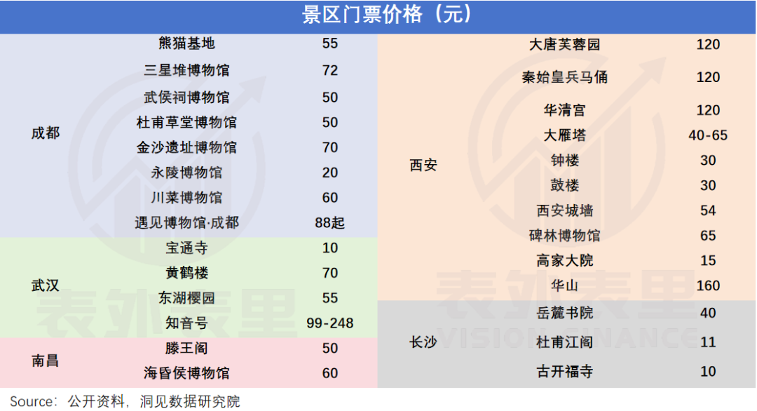 可以看到,5座城市中,文博资源格外丰富的古都西安,收费景区数量是最多的,且兵马俑、华清宫等景区,哪怕团购,票价依然高达三位数。