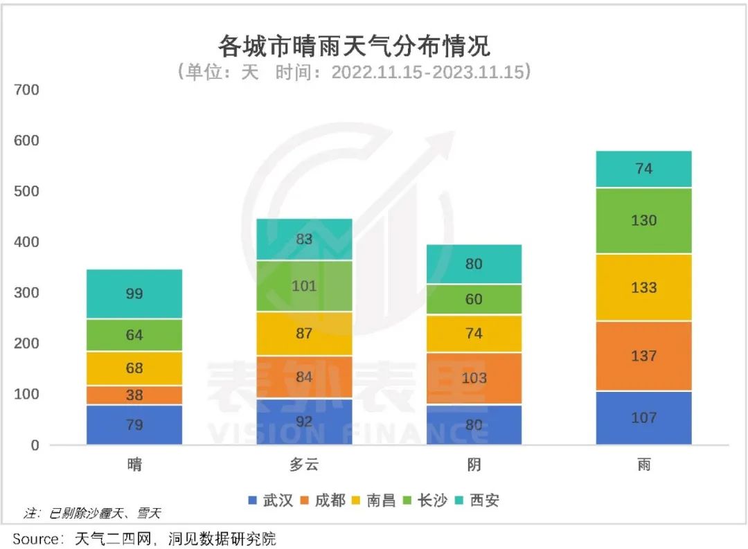 而其他城市,则总有一些小槽点,比如成都,地处多云多雾的四川盆地,雨天多、晴天少,很影响出门的心情。