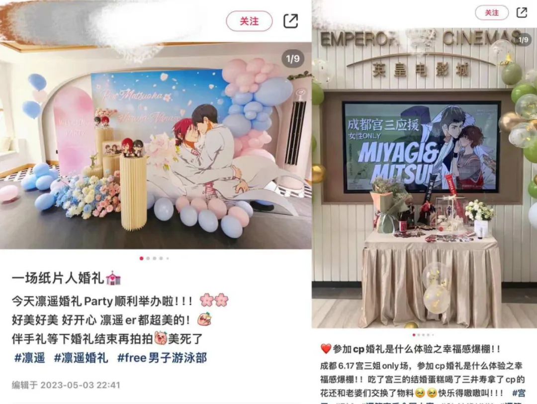 上述场景可不是你做的一场梦,而是正在现实中流行的,年轻人的新喜好——为自己磕的动漫CP办婚礼。有意思的是,许多年轻人都还没有对象,却已经操着纯纯的父母心,给自己喜欢的纸片人CP办婚礼了。而这些婚礼的参与者们也前所未有地情绪高涨:“给我的CP随份子!”“今天去吃我CP的席!”