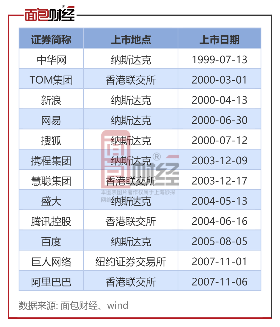 而伴随着互联网泡沫的破灭,下波重要的玩家登录资本市场则要等到三年之后,2003年开始,携程、盛大、腾讯、阿里巴巴(1688.HK)先后在纳斯达克或港交所上市。