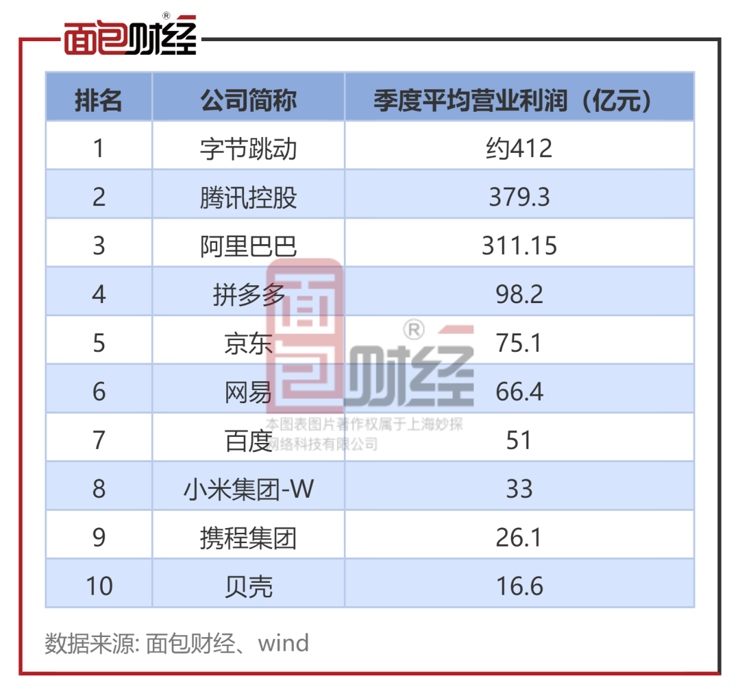字节跳动仍然没有出现在榜单上,但随着抖音和TikTok在国内和海外两个市场的攻城略地,字节即将以惊人的速度改写互联网的营业利润TOP10榜单。