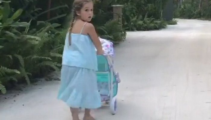 设计师贝嫂今年42岁,正与家人在马尔代夫度假,她分享了五岁女儿的甜蜜照片,小七在沙滩附近,正推着她婴儿车中的娃娃。